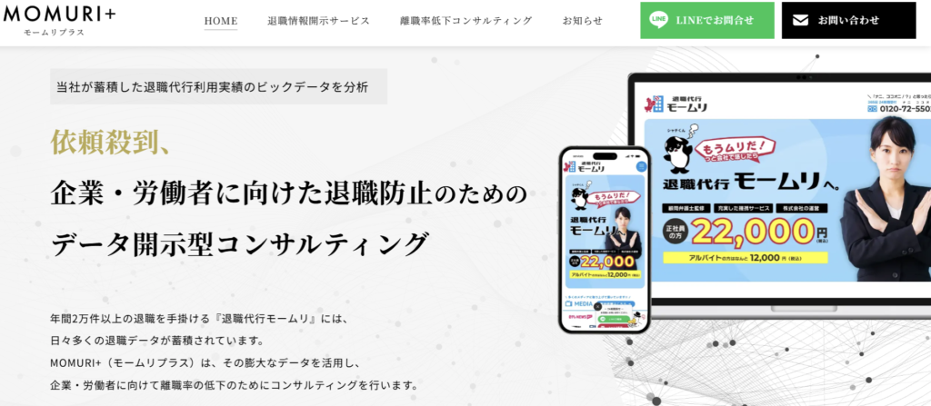 退職代行開示サービス「MOMURI+(モームリプラス)」は、退職代行モームリを運営する株式会社アルバトロスが提供する、業界初のデータ開示型コンサルティングサービスです。