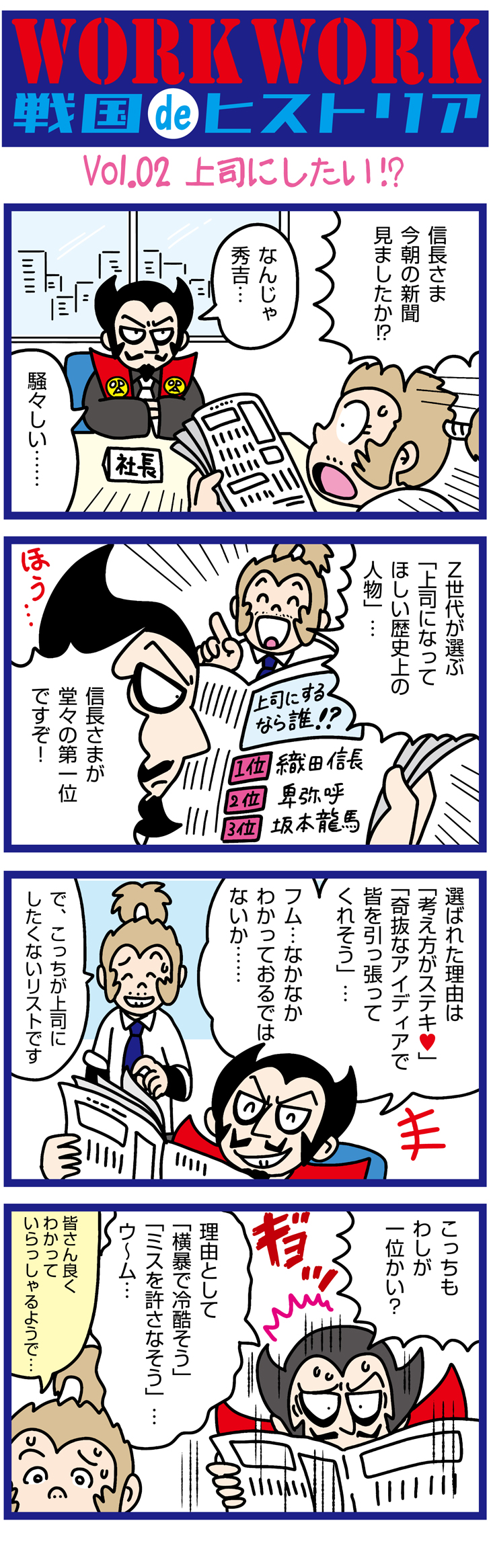 WorkWork戦国ヒストリア 第2話「上司になって欲しいランキング」歴史×求人・採用情報を漫画で学ぶ