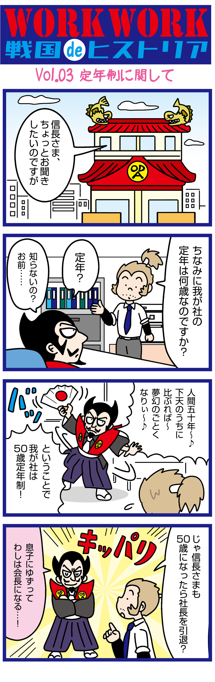 WorkWork戦国ヒストリア 第3話「定年制に関して」歴史×求人・採用情報を漫画で学ぶ