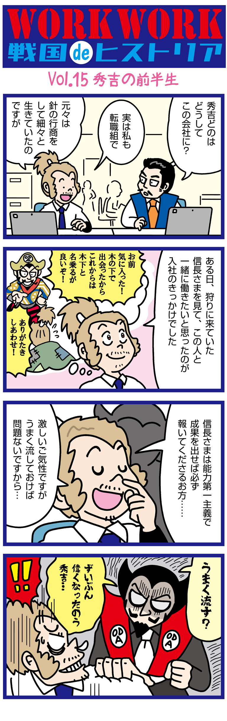 WorkWork戦国ヒストリア 第15話「秀吉の前半生」歴史×求人・採用情報を漫画で学ぶ