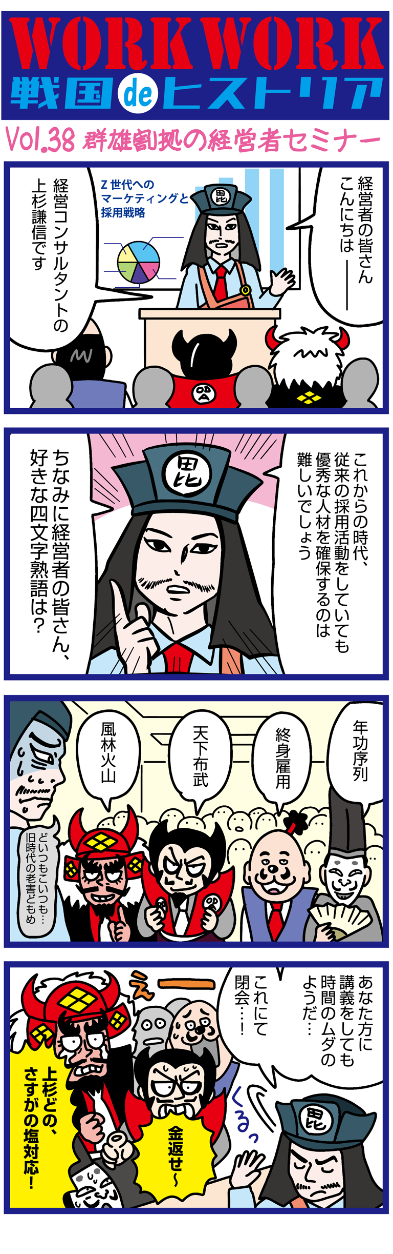 WorkWork戦国ヒストリア 第38話「群雄割拠の経営者セミナー」歴史×求人・採用情報を漫画で学ぶ