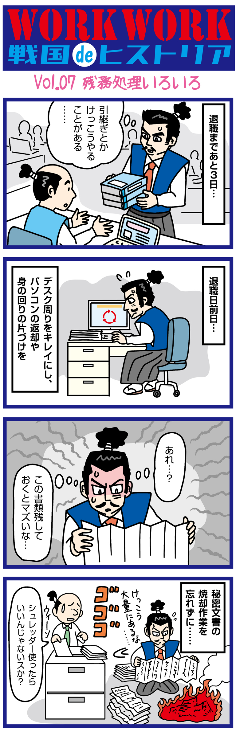 WorkWork戦国ヒストリア 第7話「光秀の退職残務処理いろいろ」歴史×求人・採用情報を漫画で学ぶ