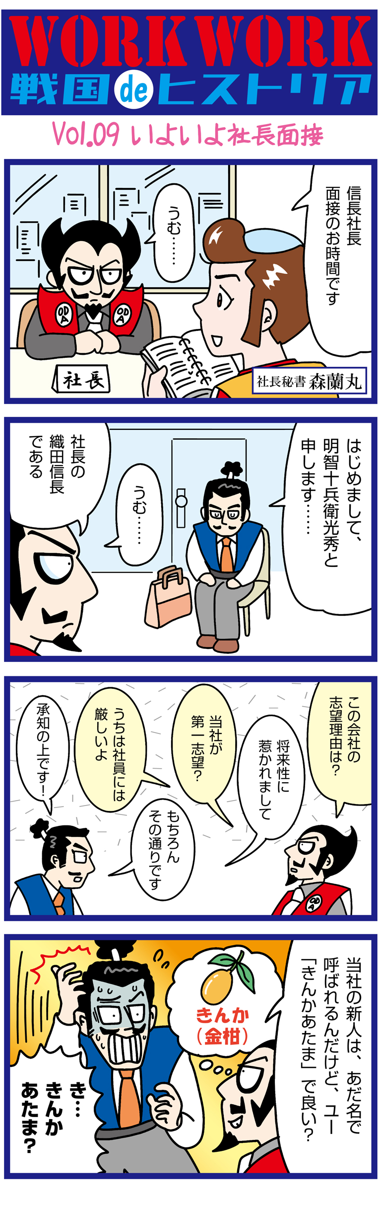 WorkWork戦国ヒストリア 第9話「光秀、いよいよ社長面接」歴史×求人・採用情報を漫画で学ぶ