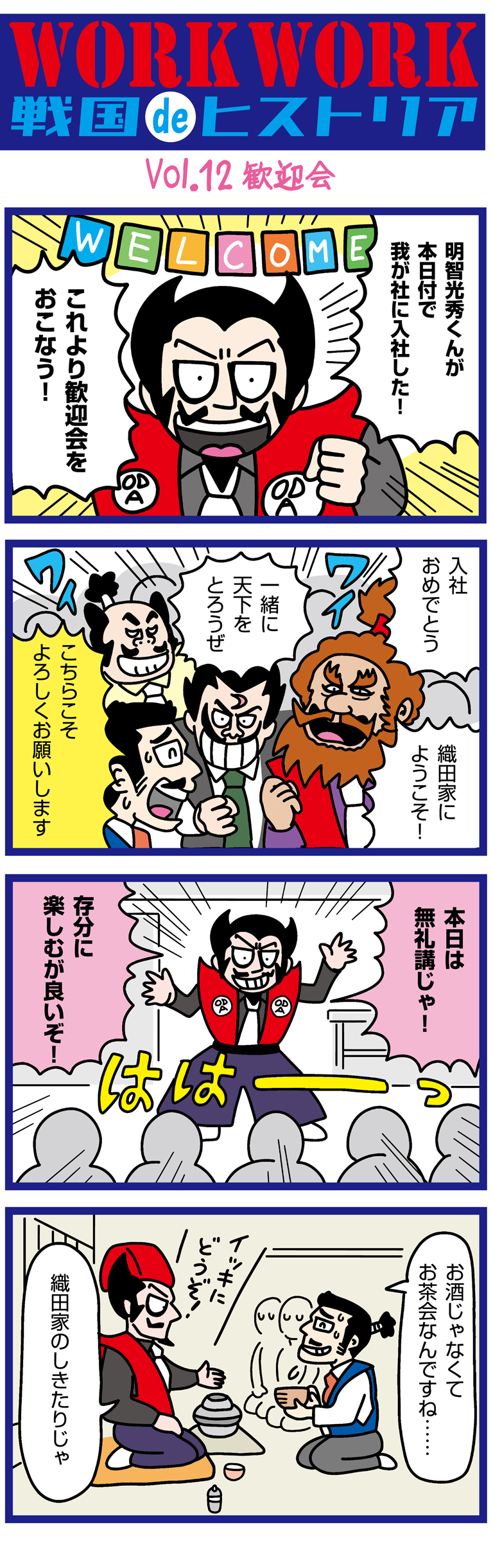 WorkWork戦国ヒストリア 第12話「織田家:歓迎会」歴史×求人・採用情報を漫画で学ぶ