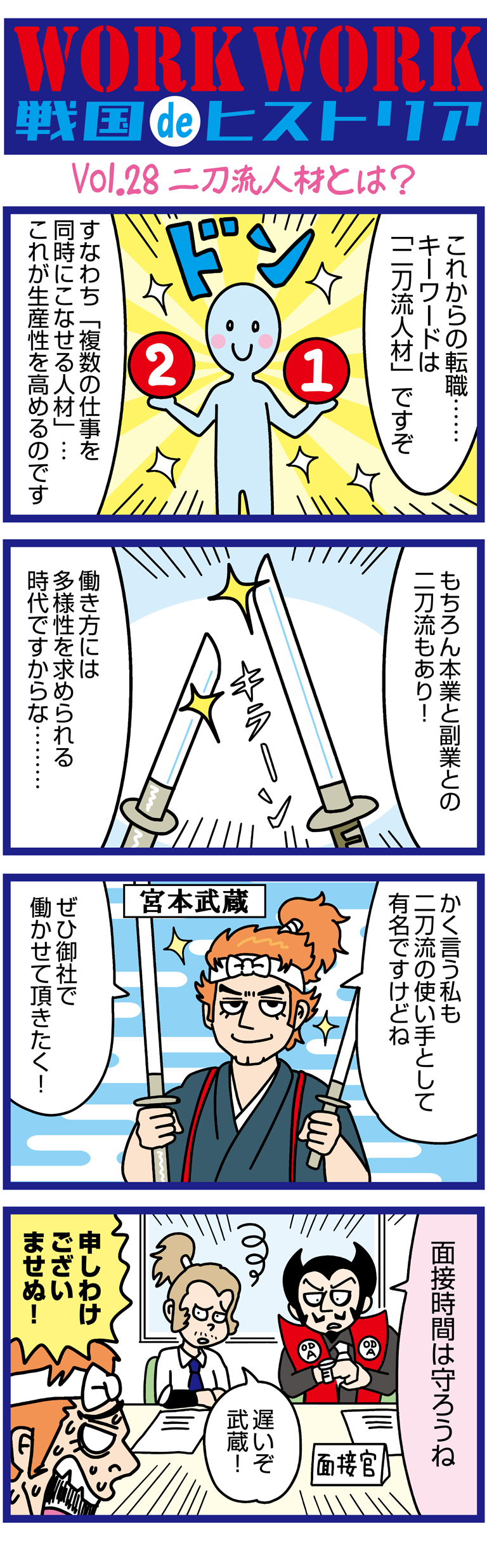 WorkWork戦国ヒストリア 第28話「宮本武蔵の二刀流人材」歴史×求人・採用情報を漫画で学ぶ