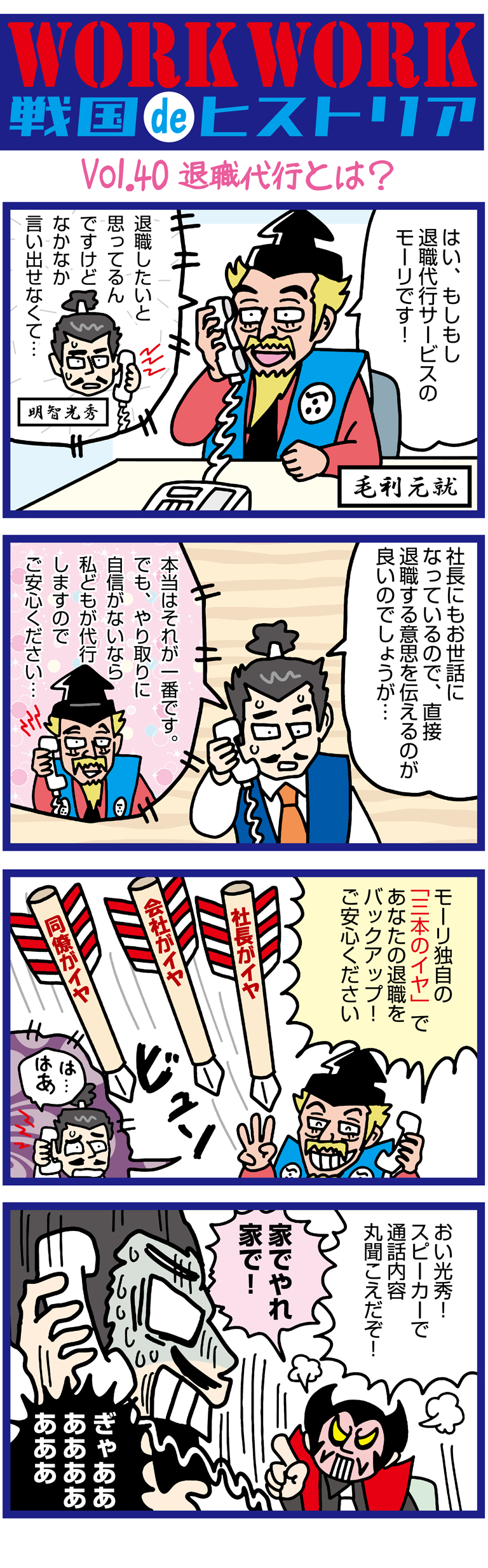 WorkWork戦国ヒストリア 第40話「毛利元就の退職代行サービス?」歴史×求人・採用情報を漫画で学ぶ