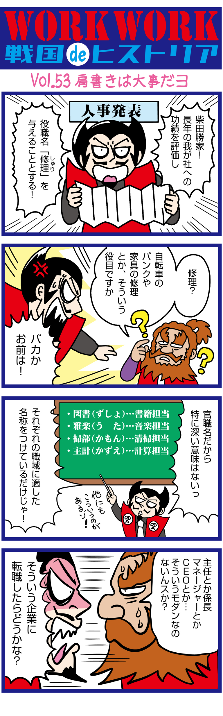 WorkWork戦国ヒストリア 第53話「肩書は大事だヨ」歴史×求人・採用情報を漫画で学ぶ