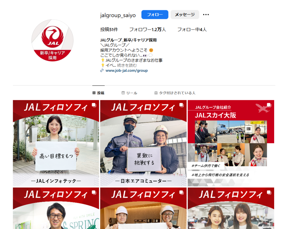 JAL(日本航空株式会社)は「#就活生とつながりたい」「#新卒採用」などのハッシュタグを活用し、従業員による自社紹介を促進することで、従来の採用手法ではリーチできなかった層にアプローチしています。また、社員インタビュー動画や職場環境の紹介など、リアルな情報を発信することで求職者からの関心を集め、応募につなげています。