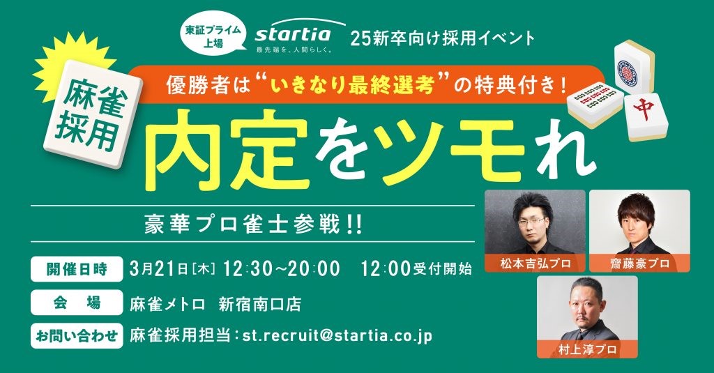 引用:スターティア株式会社「内定をツモれ!麻雀採用!3/21(木)東京開催※2025年新卒向け」