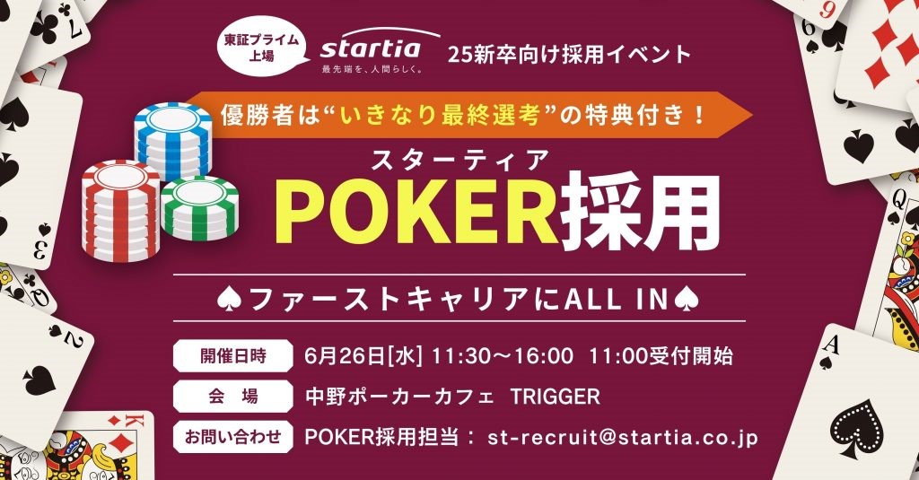 引用:スターティア株式会社「【2025卒対象】日本初!!!第1回ポーカー採用開催!6/26(水)東京開催」