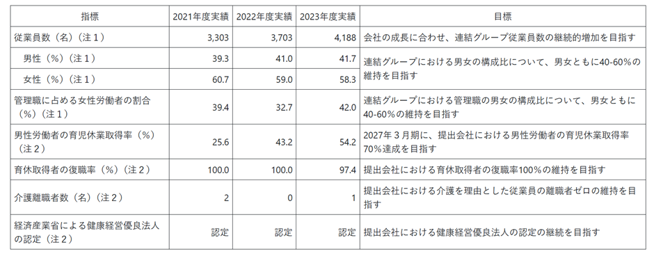 そのため、上記のように人材活用の目標数値を明確化しており、特に男性の育休所得を推奨していたり、女性の管理職割合を増やしていたりと、すべての従業員が平等に満足できる環境を目指しています。