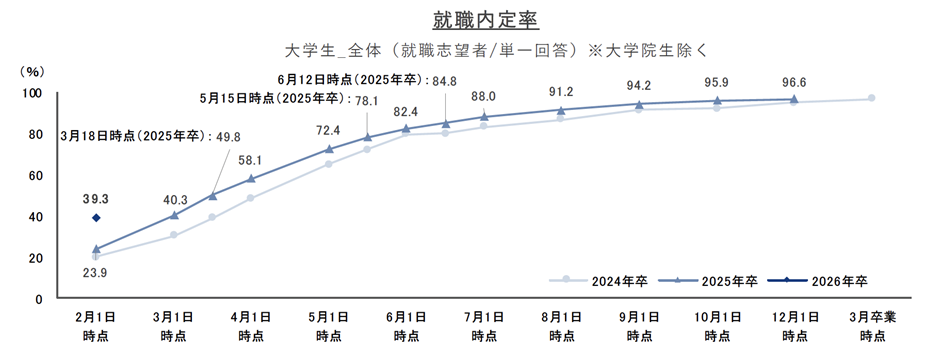 2月18日のNHKのニュースで、2026年卒の大学生の内定率が40%近くになっていることが取り上げられ、SNSで話題になりました。