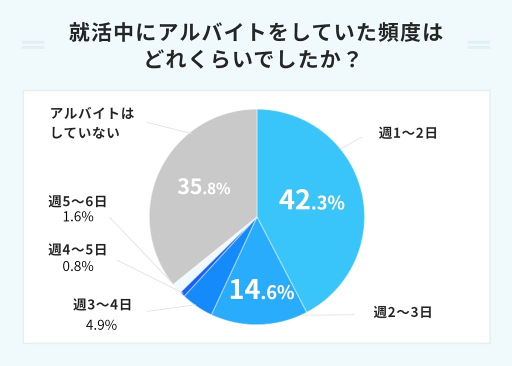 ポート株式会社が2022年におこなった、新卒採用の選考を受けたことがある大学生を対象とした調査によると、就活中にアルバイトをしていた頻度は週1~3日が半数以上という結果でした。