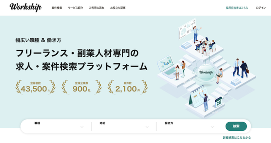 Workshipはデザイン、エンジニアリング、マーケティングなどの専門職に特化しており、スキルや実績に自信のある利用者と企業をつなぐサービスです。